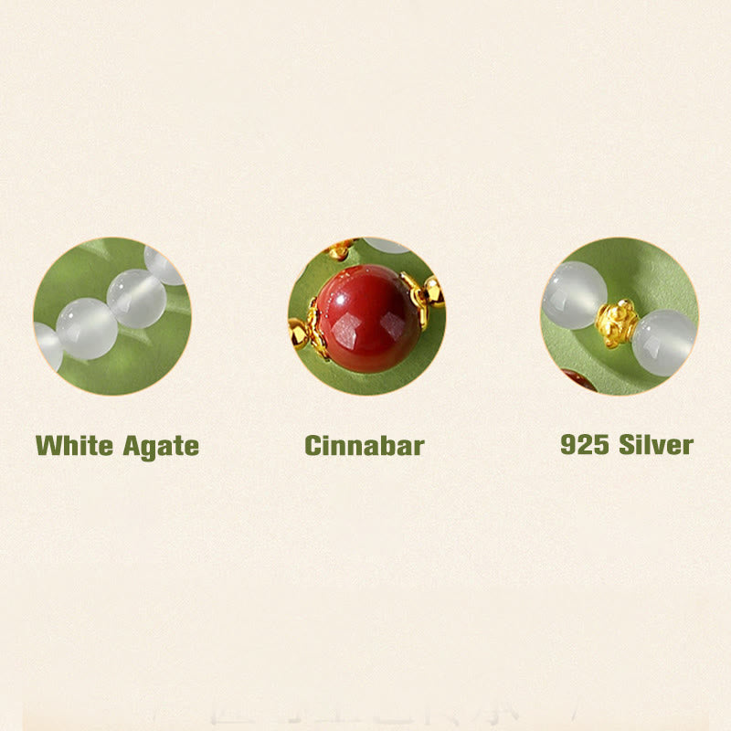 - Material: 925 Sterling Silver, White Agate, Cinnabar