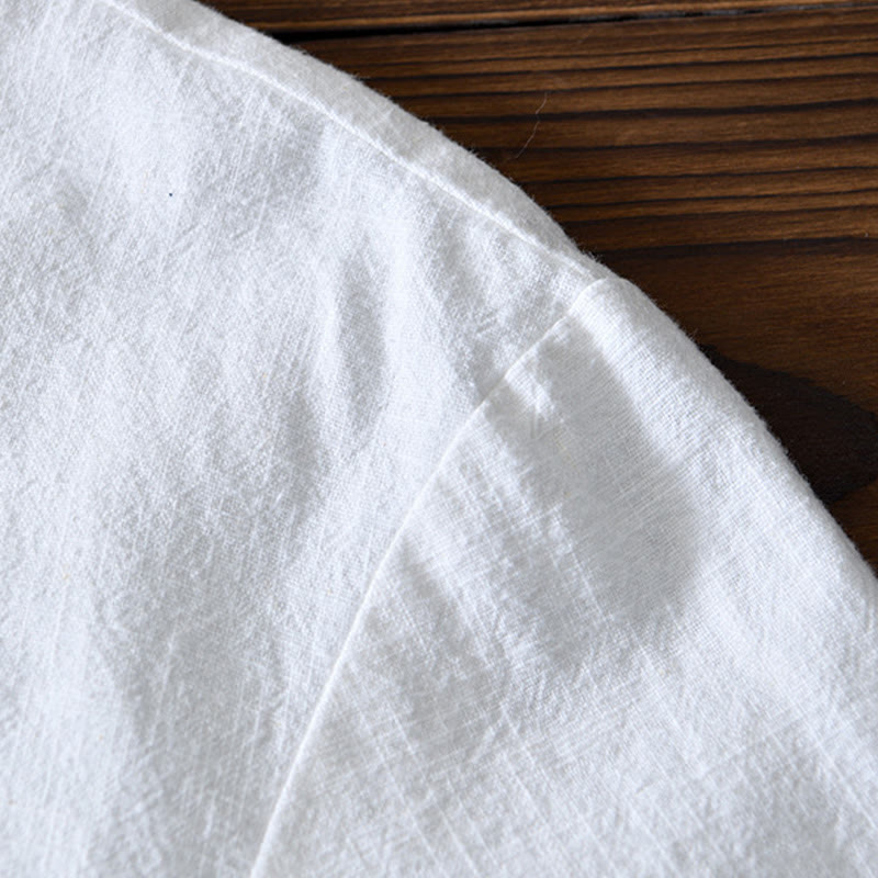 Buddha Stones Frog-Button Chinese Tang Suit Cotton Linen Men Jacket Shirt With Pockets - White - US/UK/AU50,EU60 (5XL) - image 7