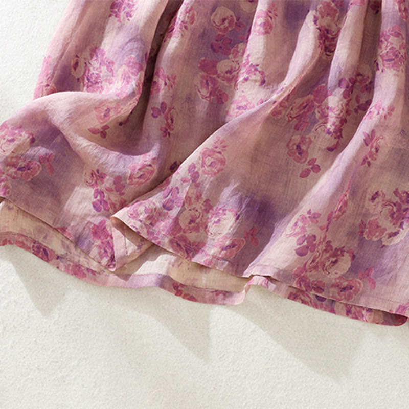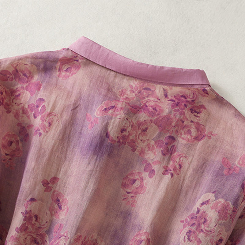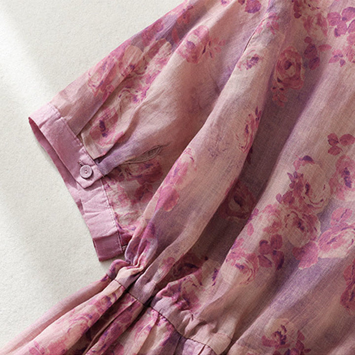 Buddha Stones Printing Buttons Drawstring High Waist Short Sleeve Cotton Midi Dress With Pockets - PaleVioletRed - US8-10,UK/AU12-14,EU40-42 (2XL) - image 21