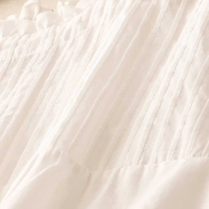 Buddha Stones Summer Pure Color Ruffled Pleated Design Women's Cotton Short Sleeve Shirt