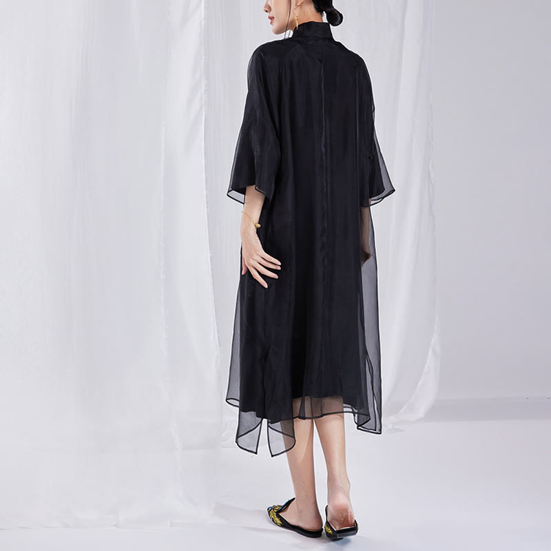 Buddha Stones 100% Mulberry Silk 6 Momme Dress Vintage Flower Butterfly Embroidery Qipao Dress Women's Cheongsam Dress - Black - US8-10,UK/AU12-14,EU40-42 (XL) - image 14