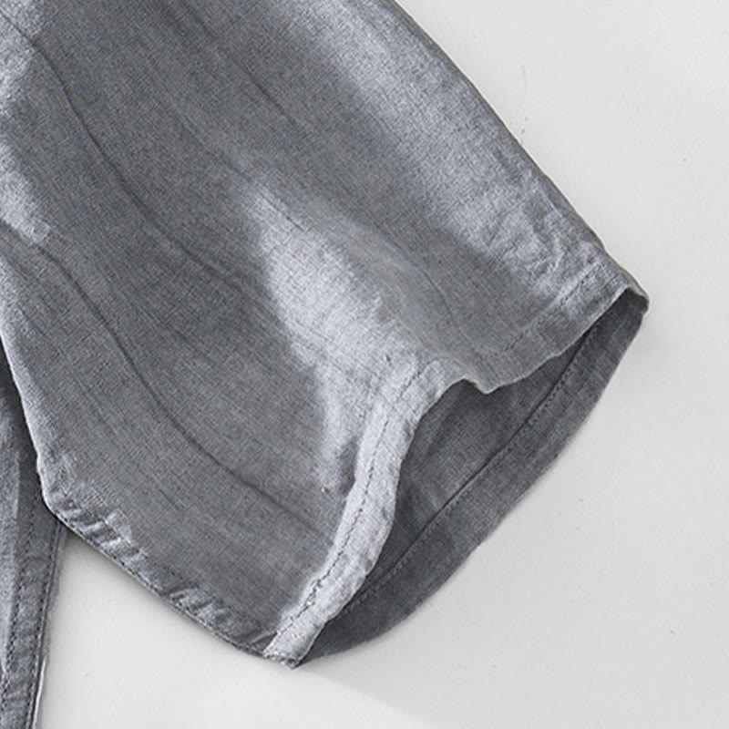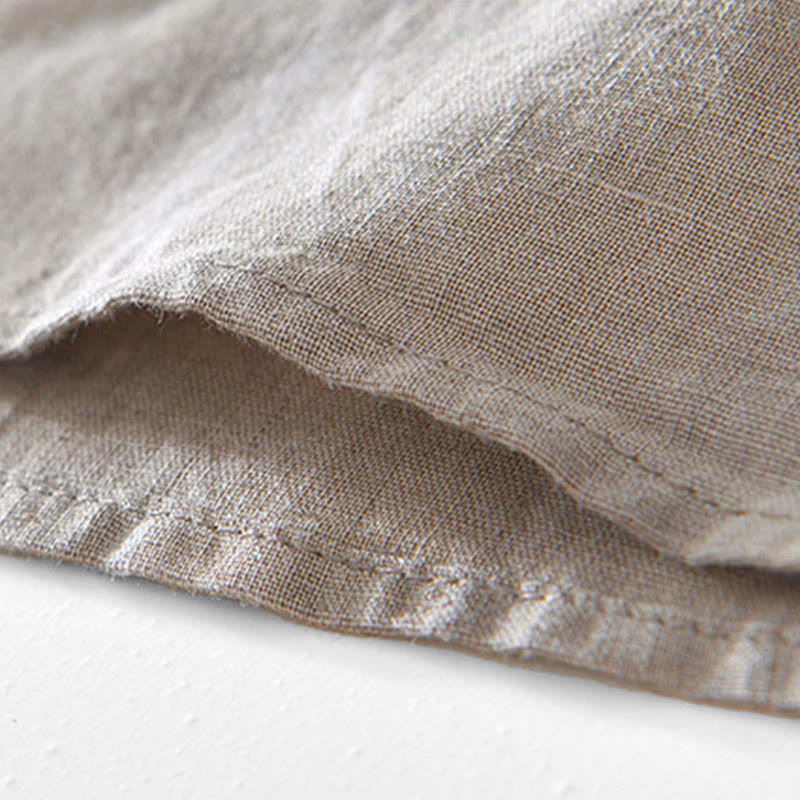 Buddha Stones Half Button Short Sleeve V-neck Ramie Cotton Men's Shirt