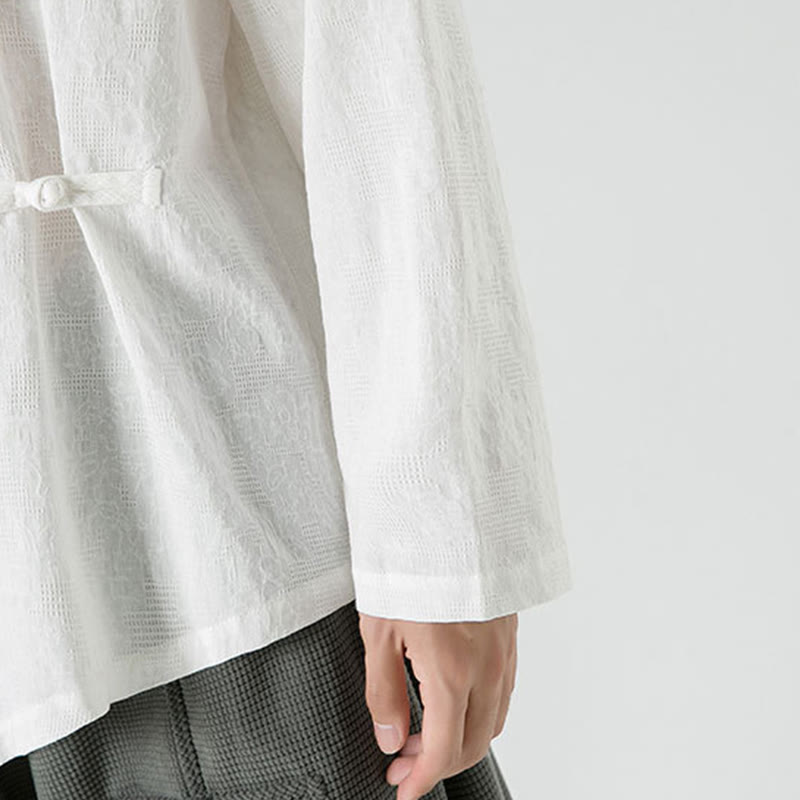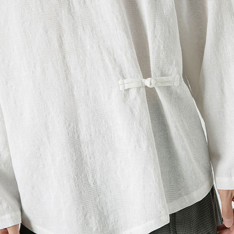 Buddha Stones Men's Chinese Frog-Button Plain Design Cotton Long Sleeve T-Shirt Zen Clothing - White - US/UK/AU46,EU56 (5XL) - image 9