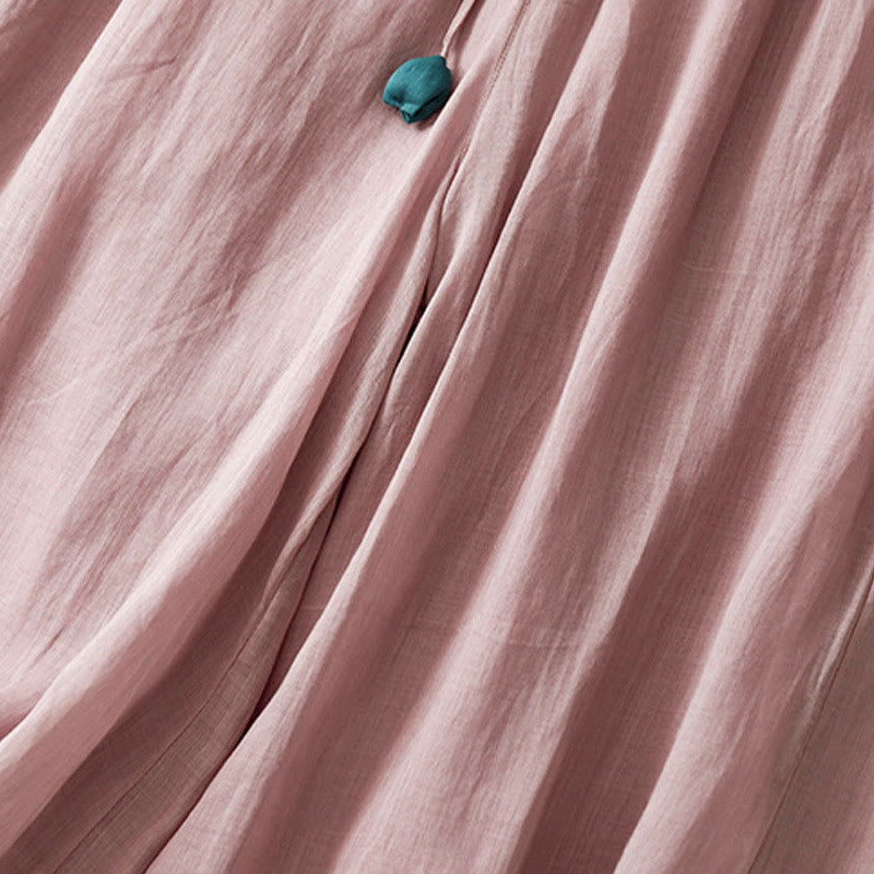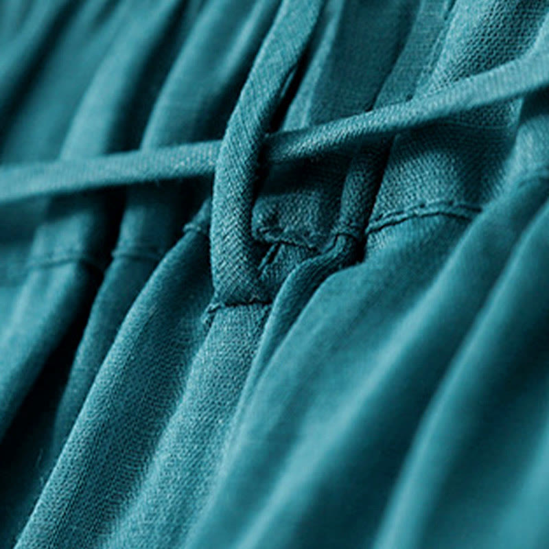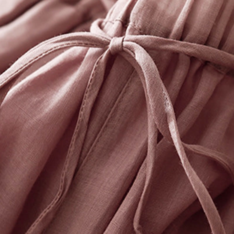 Buddha Stones Simple Design Drawstring Cotton Women's Wide Leg Pants With Pockets