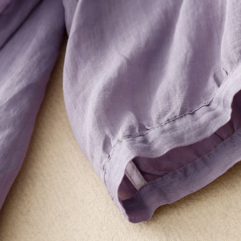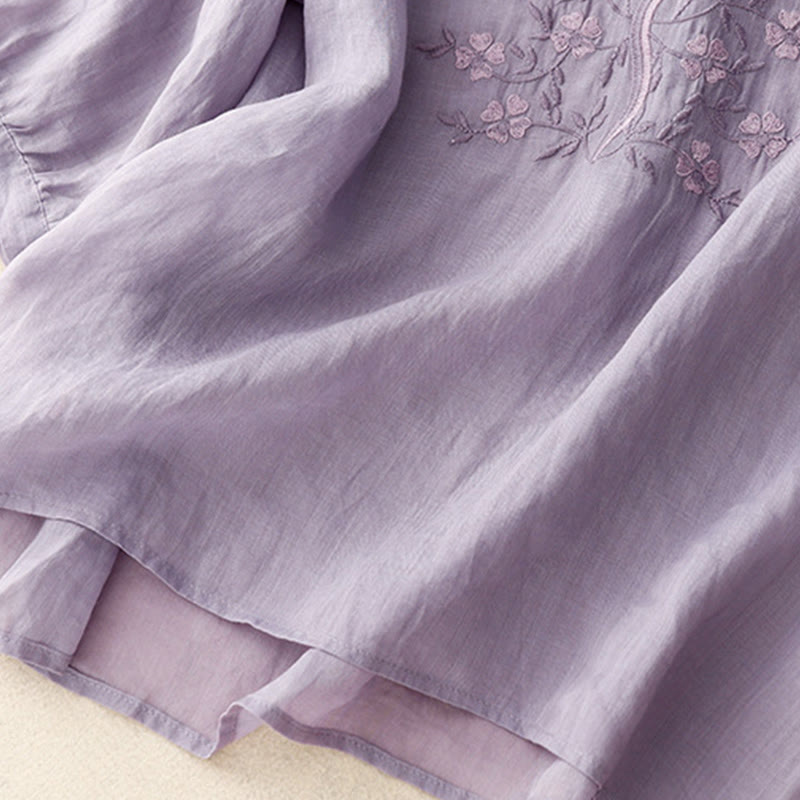 Buddha Stones Summer Casual Embroidered Flowers Women's V-neck Design Half Sleeve Acrylic T-shirt - Plum - US8-10,UK/AU12-14,EU40-42 (2XL) - image 0
