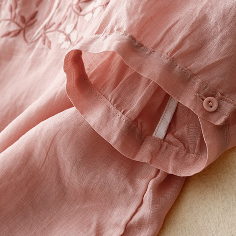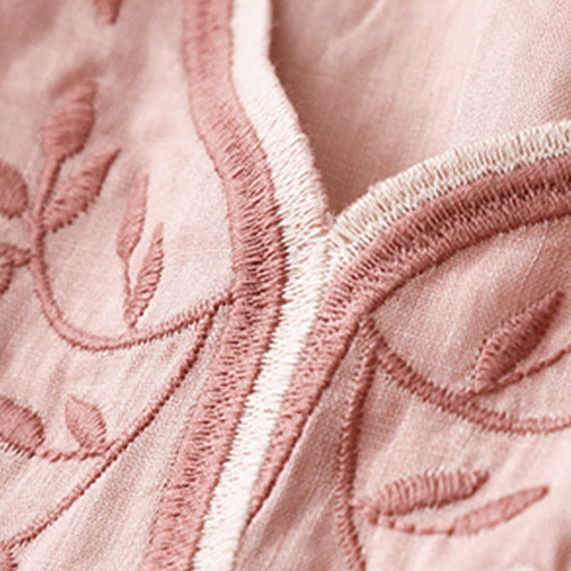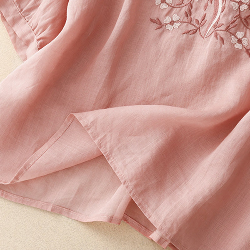 Buddha Stones Summer Casual Embroidered Flowers Women's V-neck Design Half Sleeve Acrylic T-shirt - Pink - US8-10,UK/AU12-14,EU40-42 (2XL) - image 6