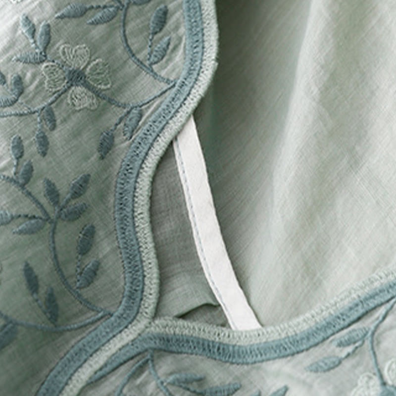 Buddha Stones Summer Casual Embroidered Flowers Women's V-neck Design Half Sleeve Acrylic T-shirt - image 20
