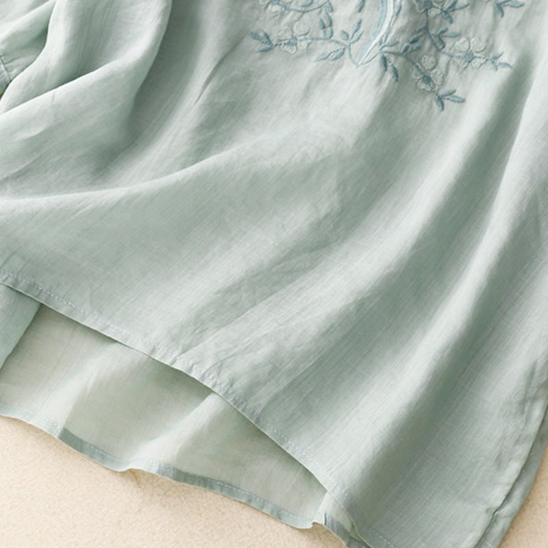 Buddha Stones Summer Casual Embroidered Flowers Women's V-neck Design Half Sleeve Acrylic T-shirt - image 23