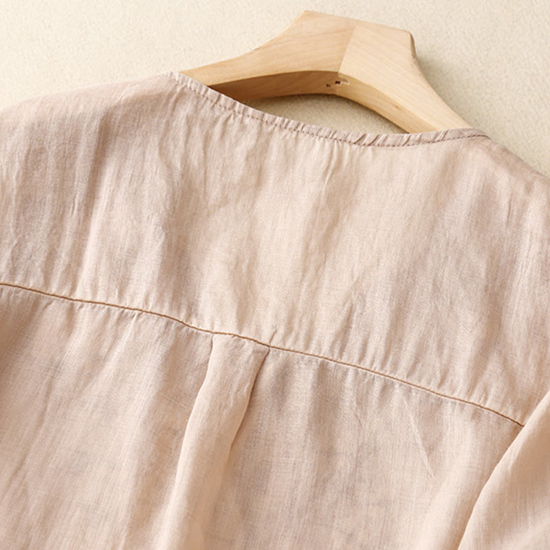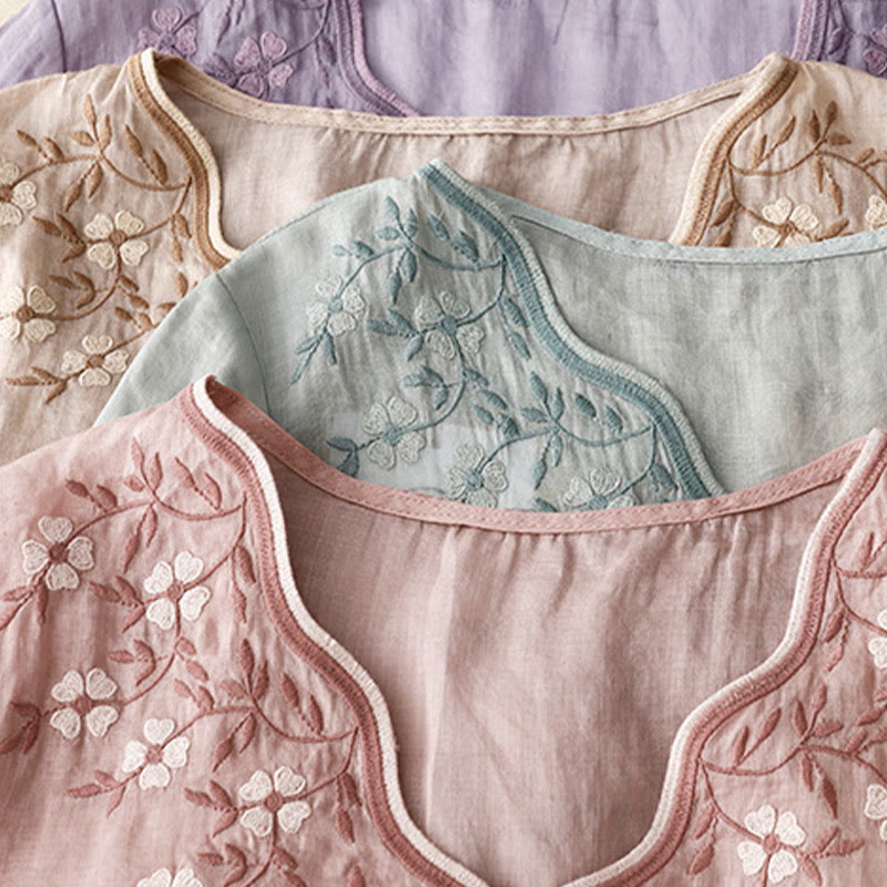 Buddha Stones Summer Casual Embroidered Flowers Women's V-neck Design Half Sleeve Acrylic T-shirt - Bisque - US8-10,UK/AU12-14,EU40-42 (2XL) - image 18