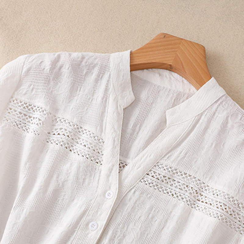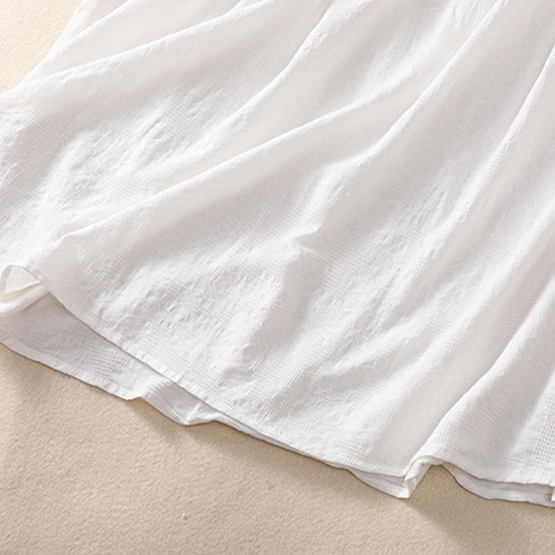 Buddha Stones Summer Plain Hollow Jacquard Design Cotton Short Sleeve Midi Dress With Pockets