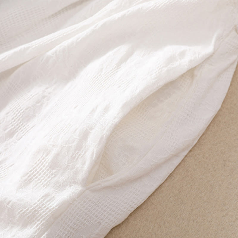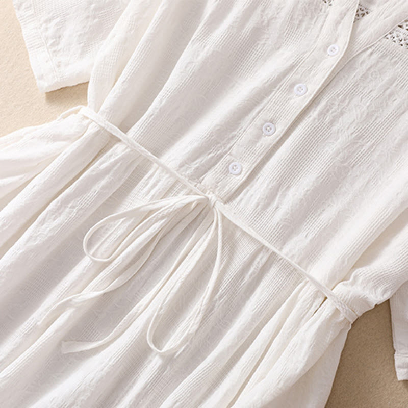 Buddha Stones Summer Plain Hollow Jacquard Design Cotton Short Sleeve Midi Dress With Pockets - White - US8-10,UK/AU12-14,EU40-42 (2XL) - image 0