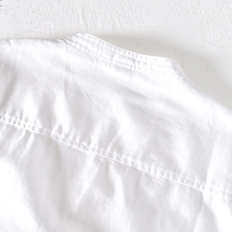 Buddha Stones Summer Stand Collar Short Sleeve Cotton Linen Half Button Men's Shirt - White - US/UK/AU42,EU52 (3XL) - image 6