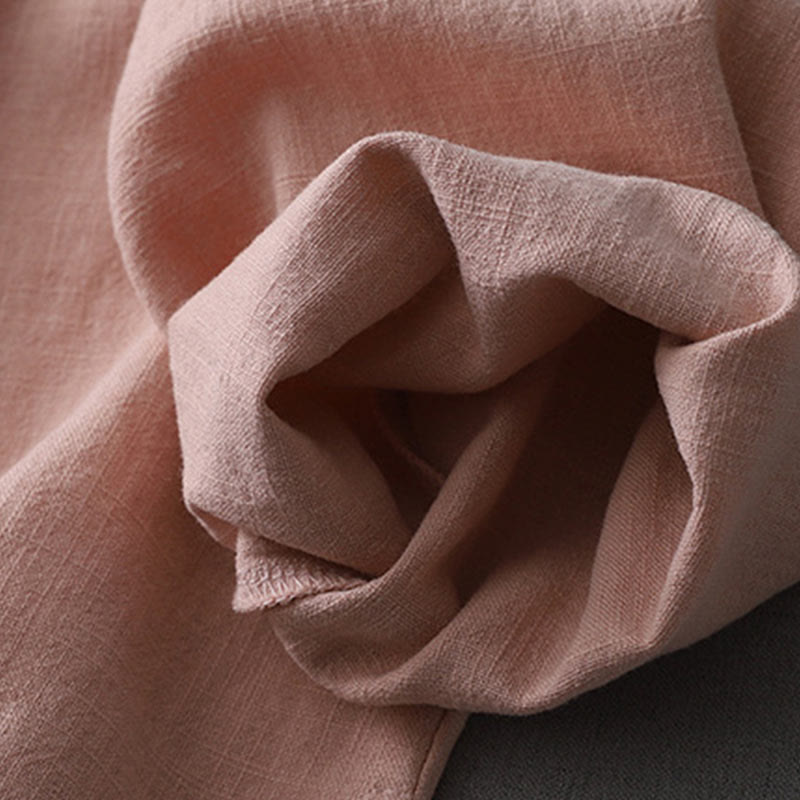 Buddha Stones Vintage Chinese Frog-Button Design Stand Collar Zen Women's Long Sleeve Cotton Linen Shirt - DarkSalmon - US8-10,UK/AU12-14,EU40-42 (2XL) - image 0