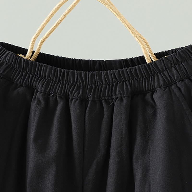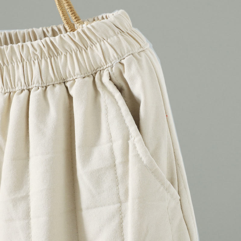 Buddha Stones Women's Ethnic Embroidery Flower Thermal Cotton Pants With Pockets