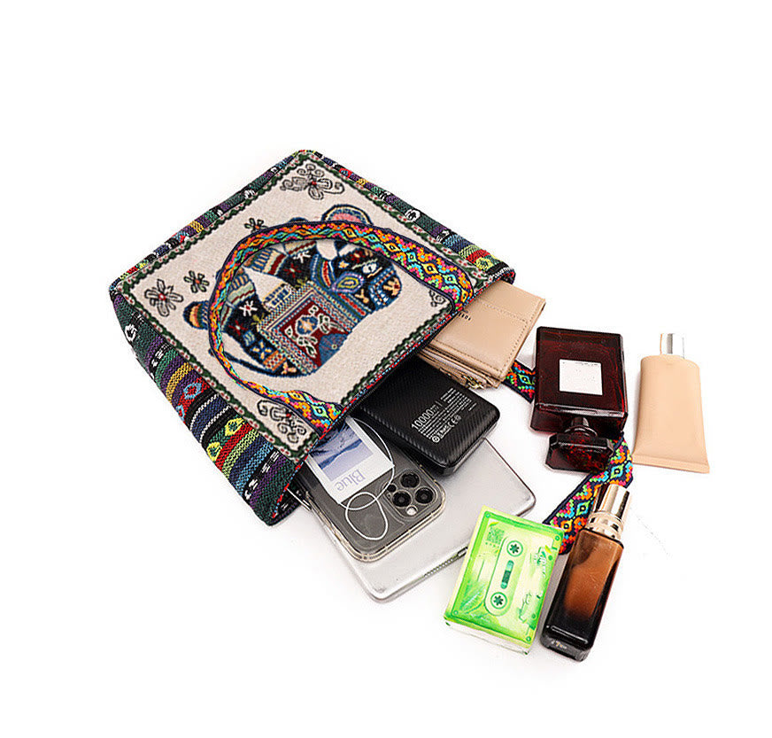 Elephant Butterfly Embroidered Large Capacity Canvas Tote Bag Shoulder Bag
