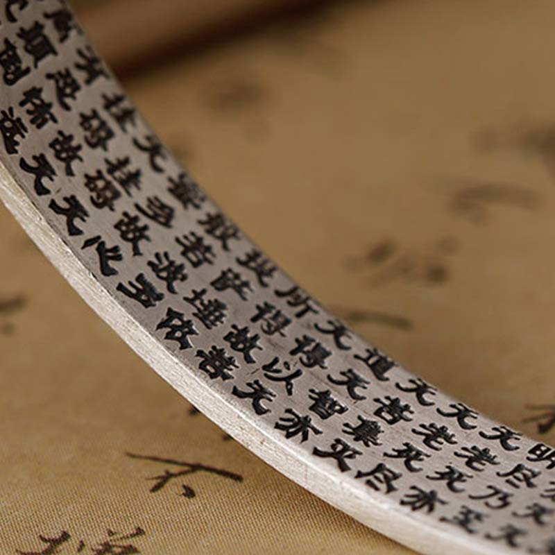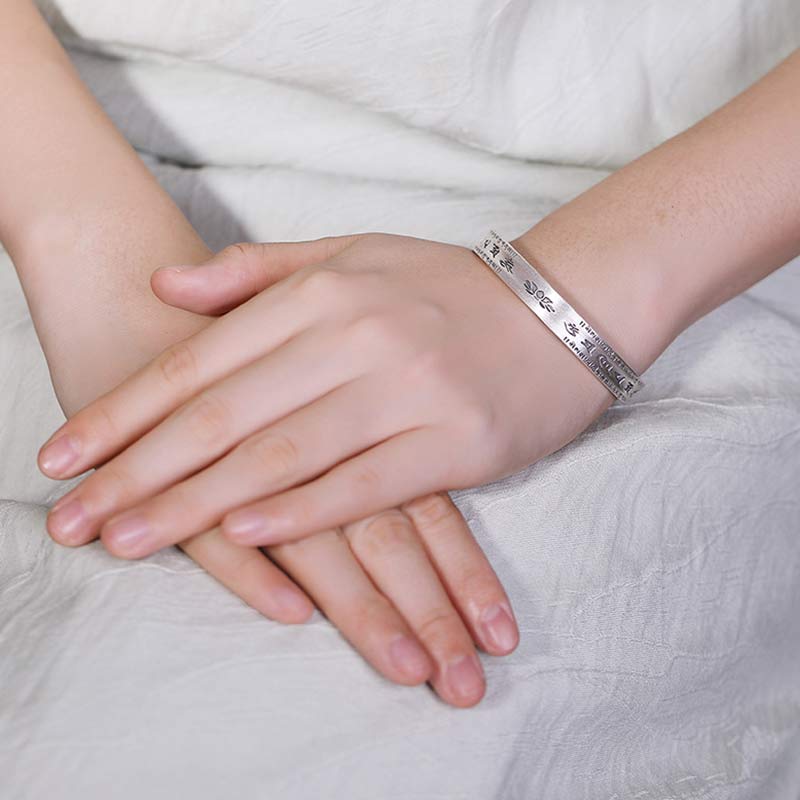 Buddha Stones 999 Sterling Silver Om Mani Padme Hum Lotus Wisdom Bracelet Bangle