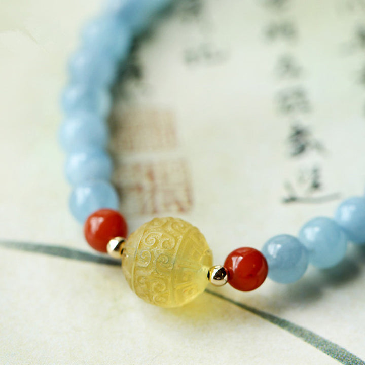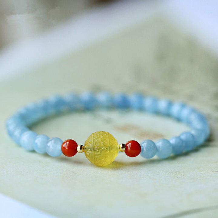 The aquamarine crystal is thought to help wearers better and more holistically heal from emotional trauma through cooling tempers and conflict. Other benefits of wearing aquamarine include stress relief, helping suppressed emotions resurface and instilling a sense of peace.
