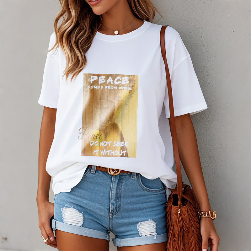 Peace Comes From Within Tee inspires inner tranquility with its uplifting message. Made from soft, breathable fabric, this tee provides comfort and encourages mindfulness. The serene design promotes a peaceful mindset, making it perfect for meditation and relaxation. Ideal for those seeking to cultivate inner peace and calm, this tee is a gentle reminder to look within for harmony.