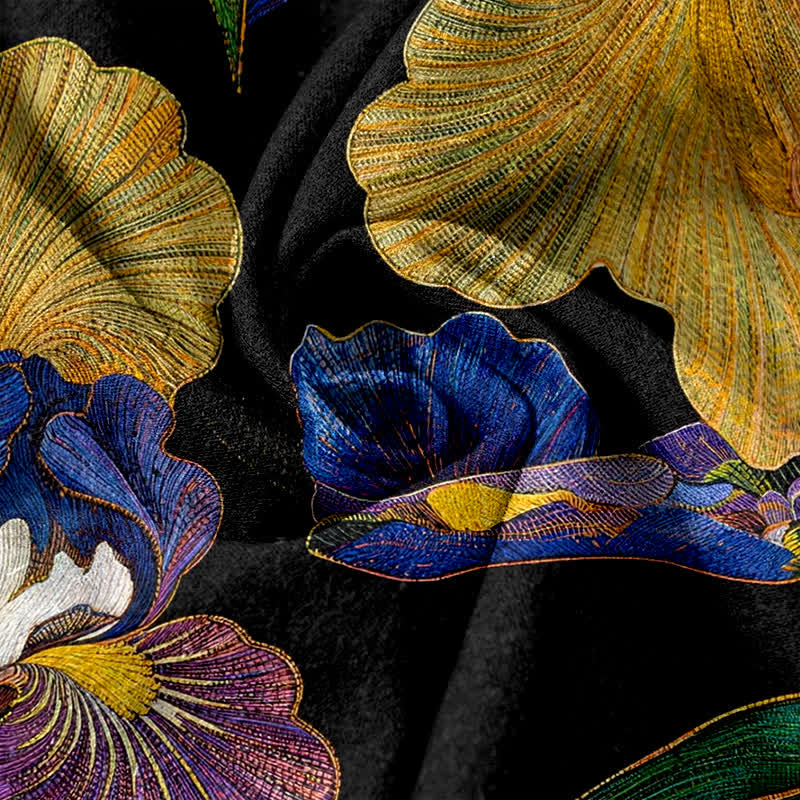 - Design: The pattern on these pants represents elegance and beauty, as the iris flower is often associated with wisdom, hope, and renewal in various cultures.The intricate design evokes a sense of grace, linking the wearer to natural symbolism and aesthetic richness.