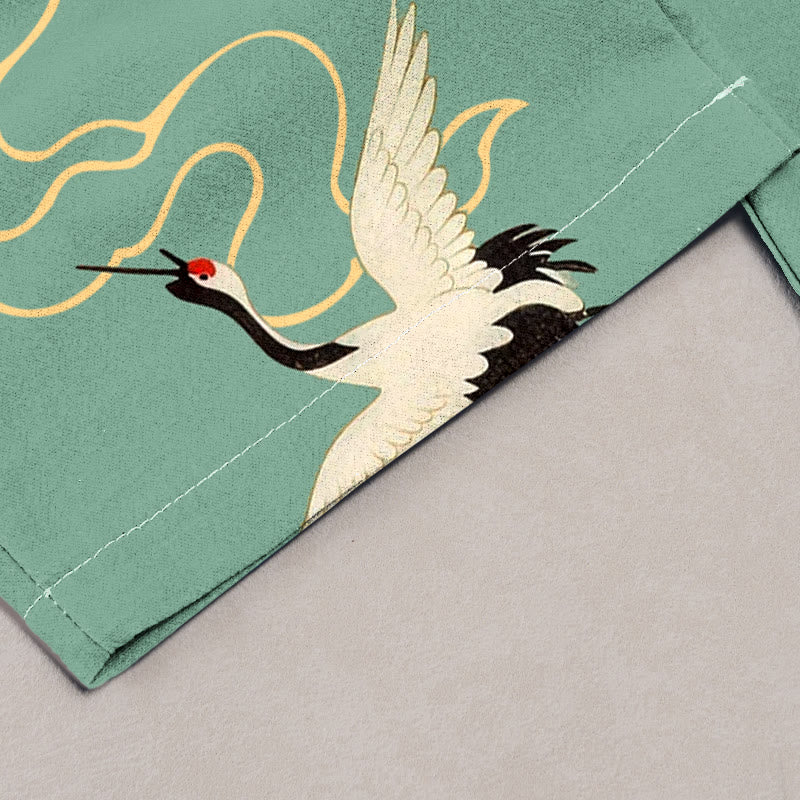 - Design: The red-crowned crane and cloud patterns hold rich symbolic meaning in Eastern tradition. The graceful cranes represent longevity, purity, and good fortune, seen as celestial messengers that bridge heaven and earth. The swirling golden cloud motifs evoke harmony, eternity, and the gentle flow of cosmic energy. Together, these patterns embody a sense of serene elegance and reverence for life’s enduring beauty.