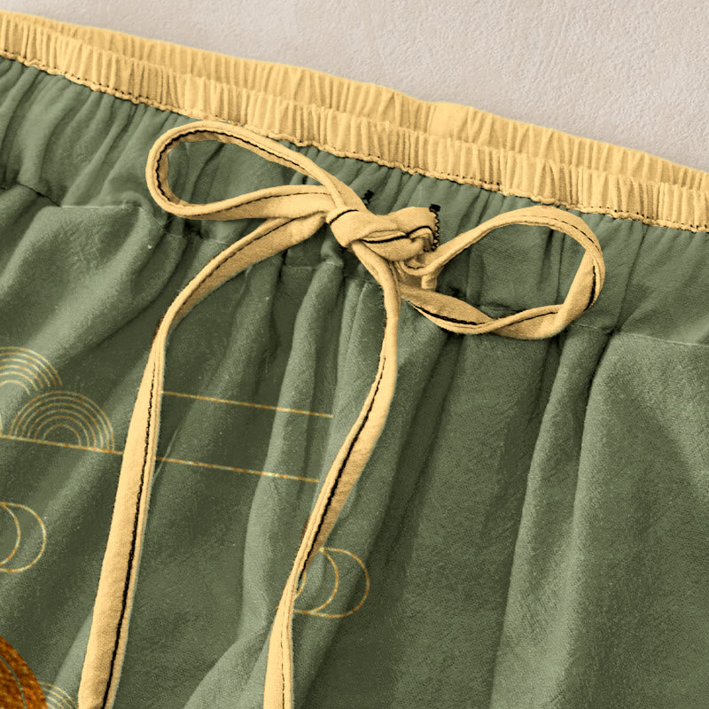 Buddha Stones Pure Cotton Koi Fish Wave Pattern Women's Elastic Waist Pants With Pockets - OliveDrab - US16,UK/AU20,EU48 (3XL) - image 1
