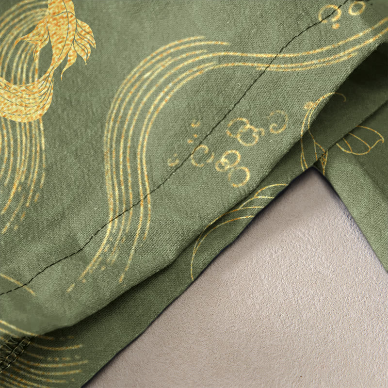 Buddha Stones Pure Cotton Koi Fish Wave Pattern Women's Elastic Waist Pants With Pockets