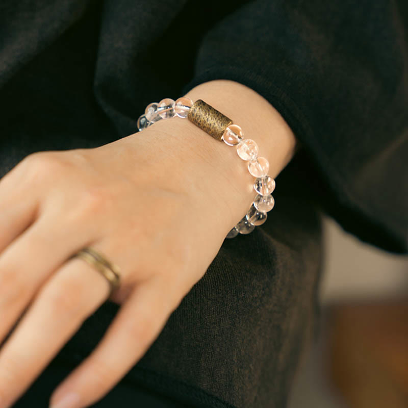Buddha Stones White Crystal Red Hematoid Quartz Gold Rutilated Quartz Purple Phantom Protection Bracelet - White Crystal - 17-17.5cm - image 0