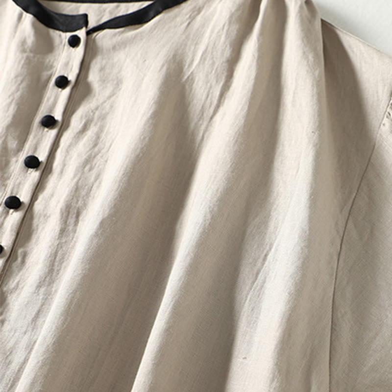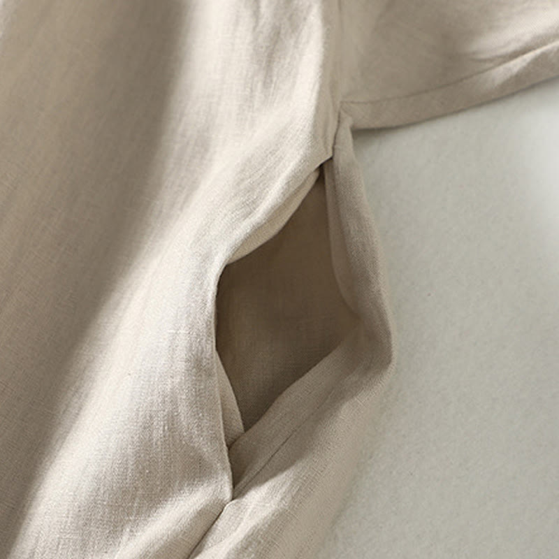 Buddha Stones Buttons Design Women's Long Sleeve Coat With Pockets - Linen - US14,UK/AU18,EU46 (2XL) - image 0