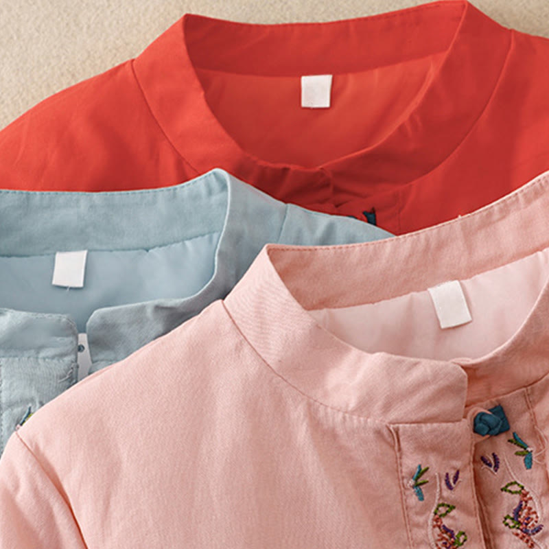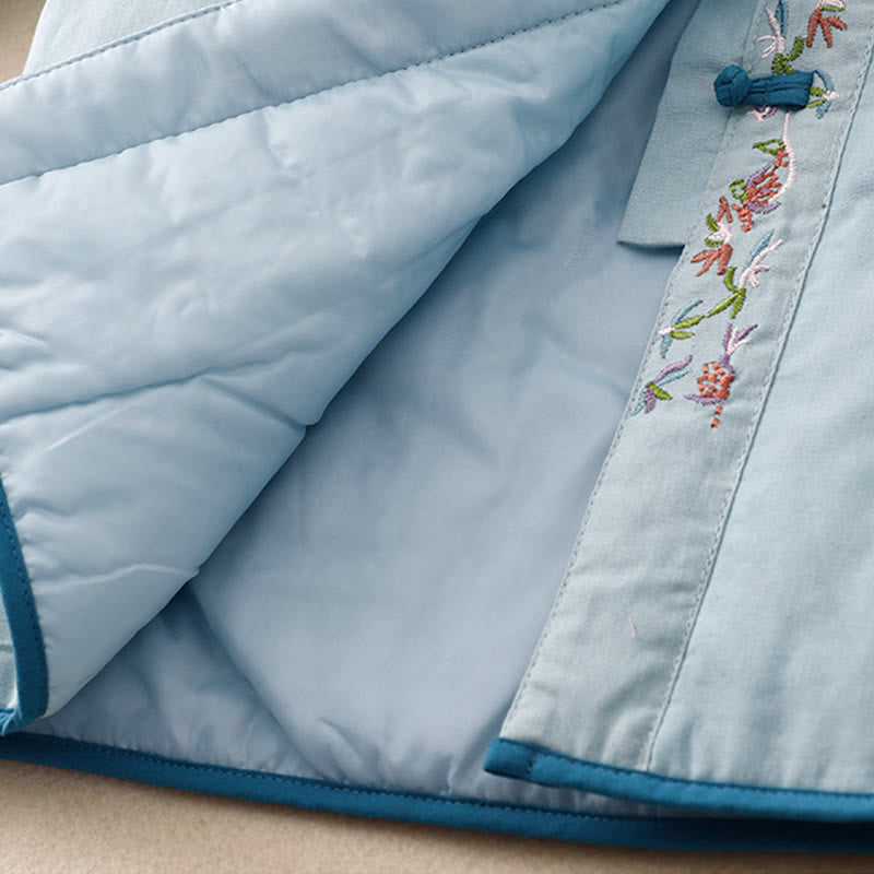 Buddha Stones Winter Flower Embroidery Frog-Button Long Sleeve Women's Thermal Jacket