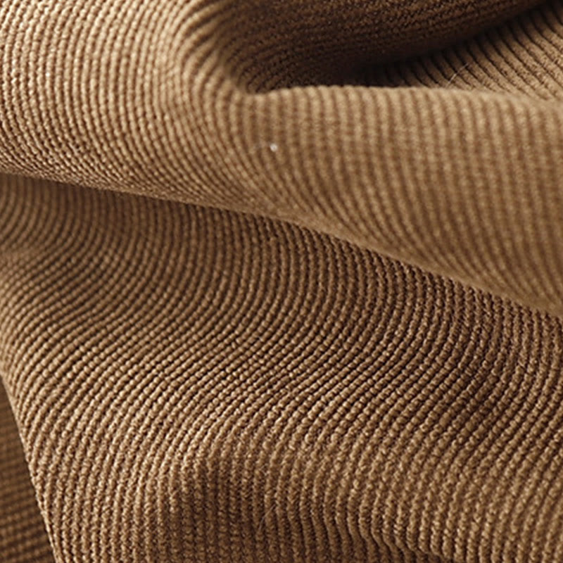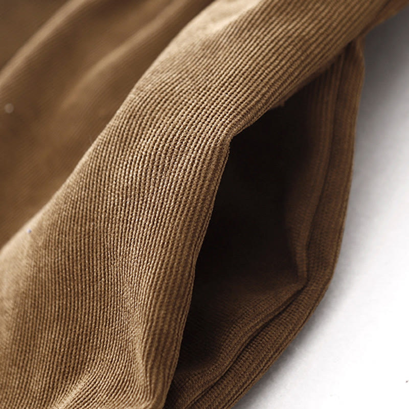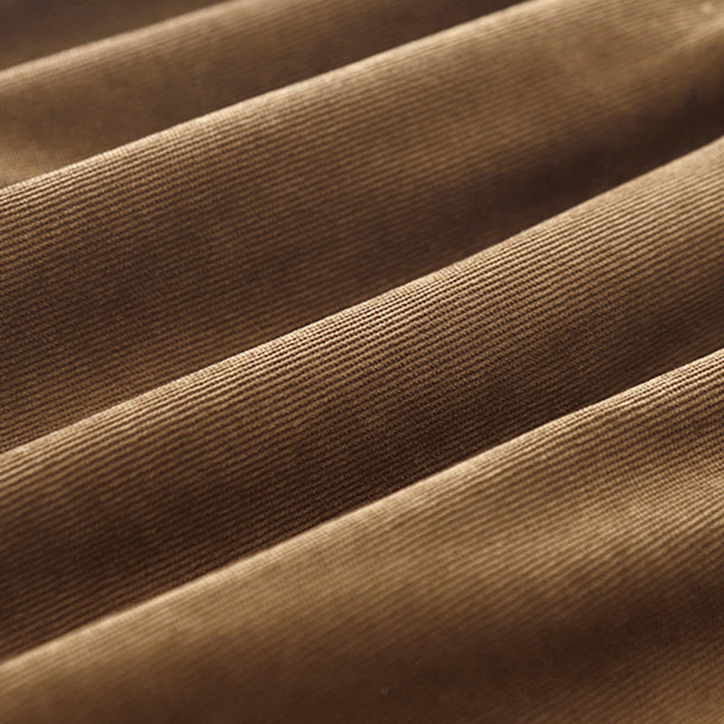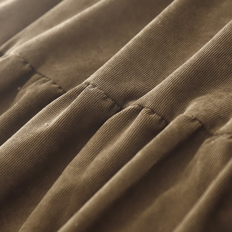 Buddha Stones Button Design Corduroy Peter Pan Collar Long Sleeve Midi Dress With Pockets