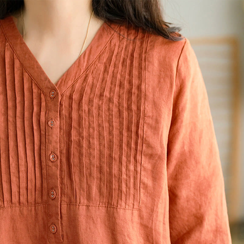 Buddha Stones Casual Plain Accordion Pleats V-neck Half Sleeve Design Midi Dress With Pockets - Coral - US12,UK/AU16,EU44 (3XL) - image 6