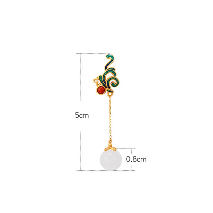 Buddha Stones Vintage White Jade Red Agate Bead Blessing Drop Dangle Earrings