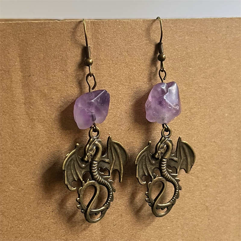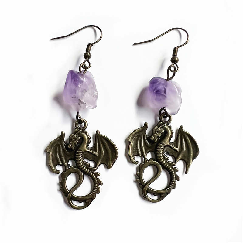 Dragon Amethyst Pattern Protection Necklace Pendant Earrings