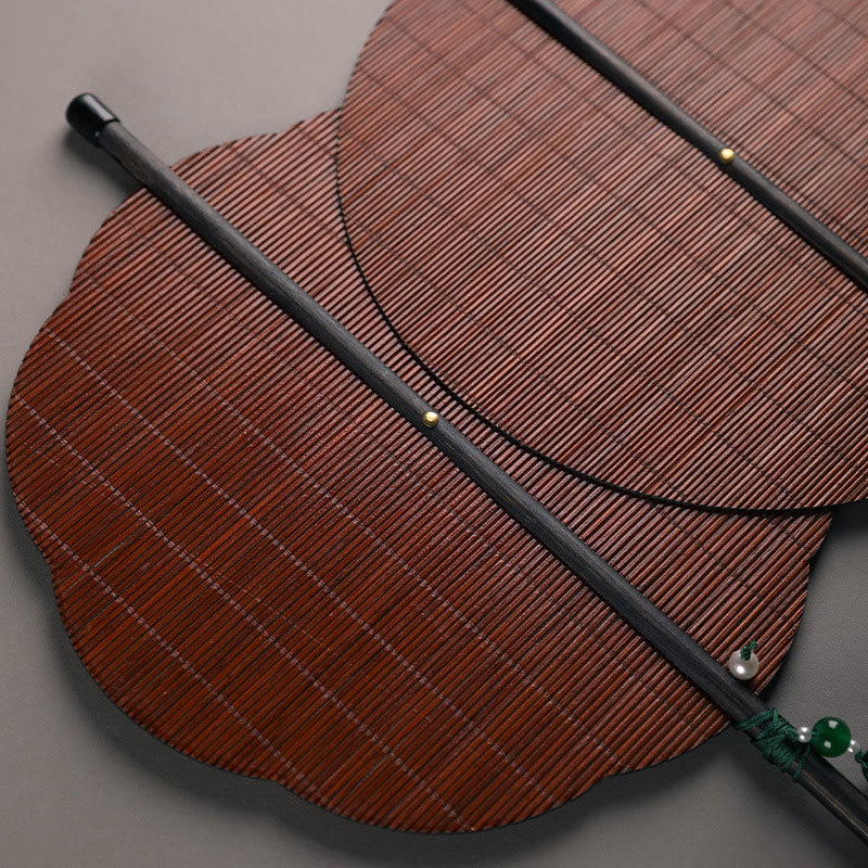 Buddha Stones Handmade Bamboo Thousand Miles of Rivers and Mountains Long Handle Portable Curlable Fan