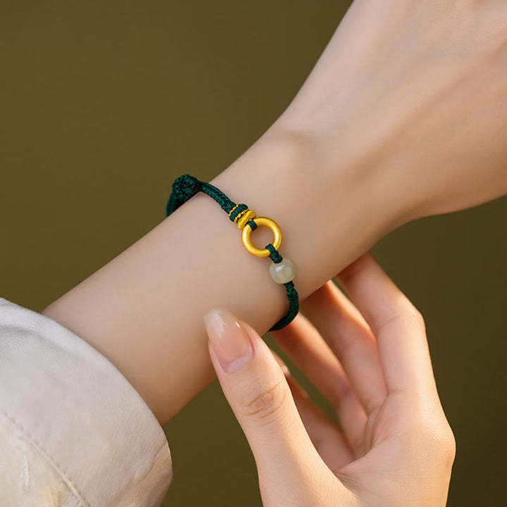 Buddha Stones 999 Sterling Silver Peace Buckle Hetian Jade Bead Luck Green Rope Braided Bracelet
