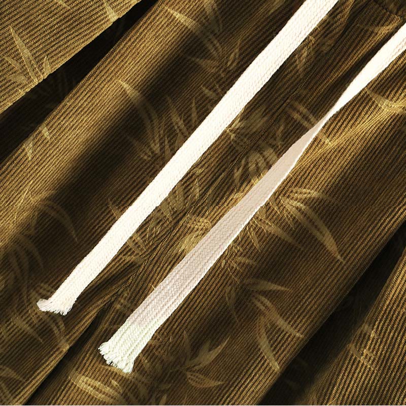 Buddha Stones Bamboo Leaves Corduroy Drawstring Cotton Men's Wide Leg Pants With Pockets