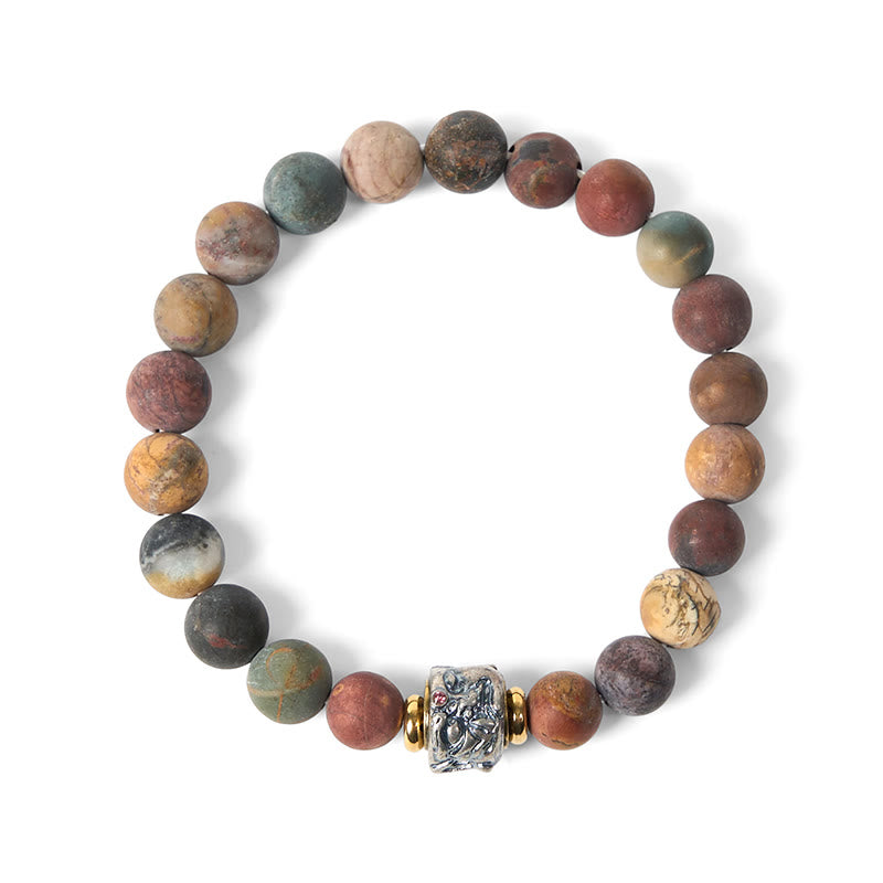 Picasso Jasper often begins with a soft, matte texture. Over time, it naturally transforms—absorbing your skin’s natural oils and becoming gently polished through daily touch. This process can bring out a smooth, radiant shine, making the stone feel warmer, richer, and uniquely yours.