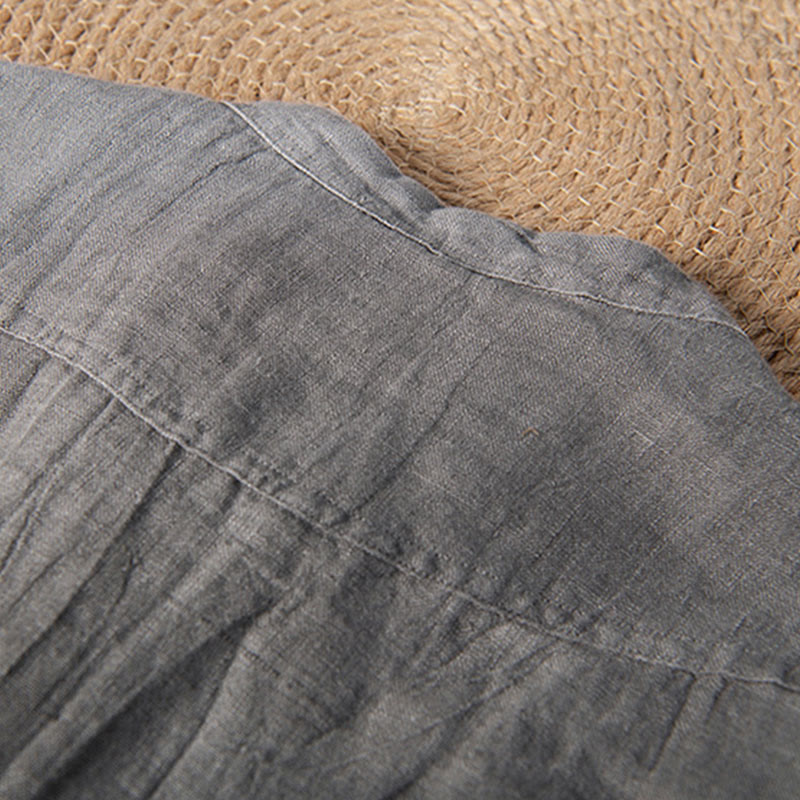 Buddha Stones Solid Color Short Sleeve Half Button Shirt Cotton Linen Men Clothing - Long Sleeve - Gray - US/UK/AU50,EU60 (5XL) - image 25