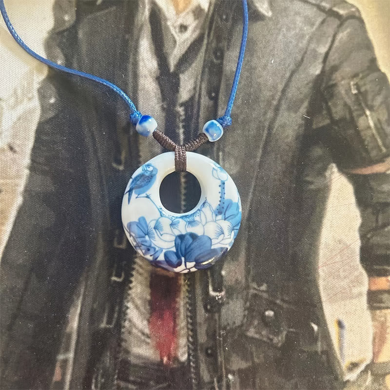 Buddha Stones Ethnic Peony Peach Blossoms Lotus Symbol Ceramics Necklace Enlightenment Pendant - Village Landscape - image 8