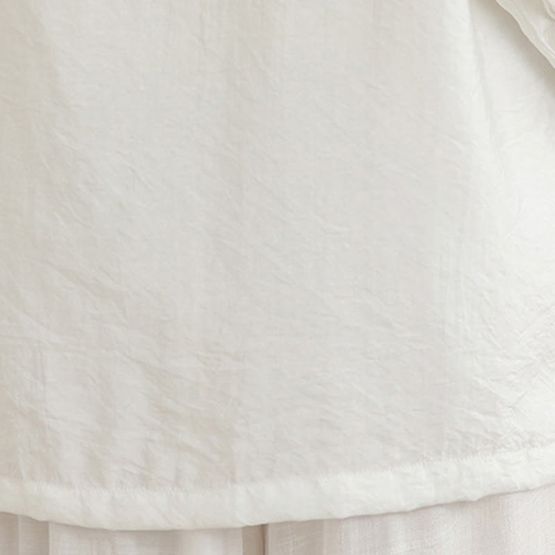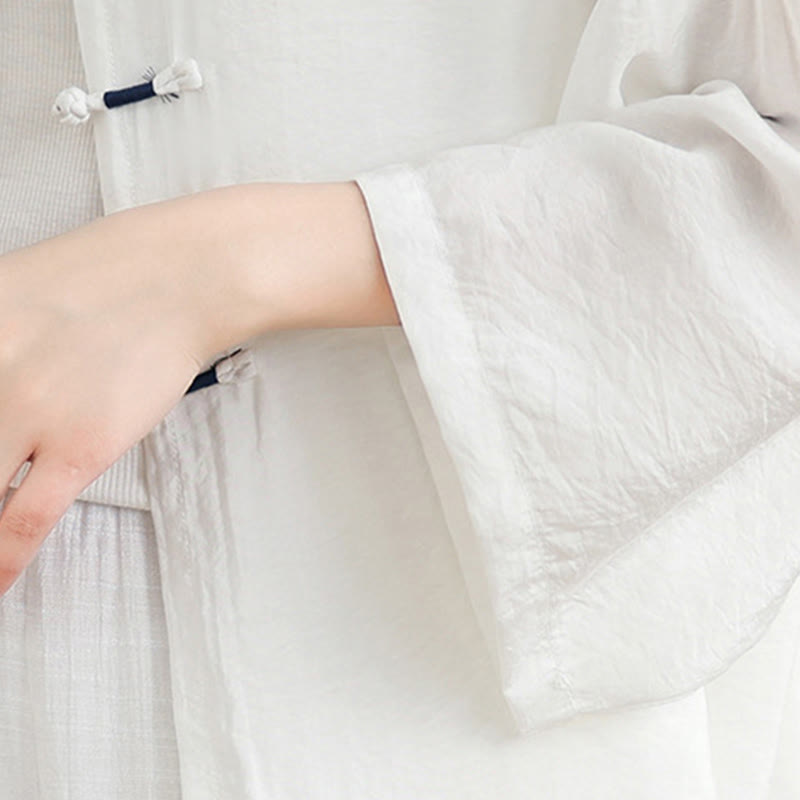 Buddha Stones 2pcs Casual Women's Frog Button Shirt Loose Pants Meditation Clothing Set - Snow - US12,UK/AU16,EU44 (XL) - image 7