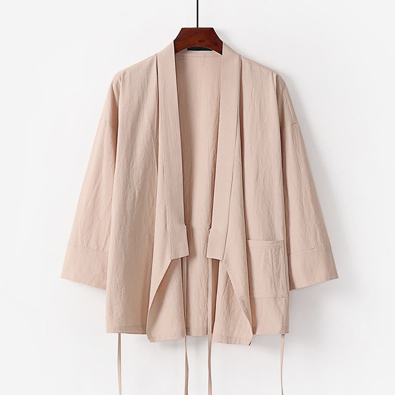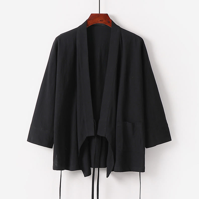 Buddha Stones 2Pcs Fall Lace-up Cotton Kimono Ankle-Length Wide Leg Pants With Pockets Men's Meditation Cloth Set