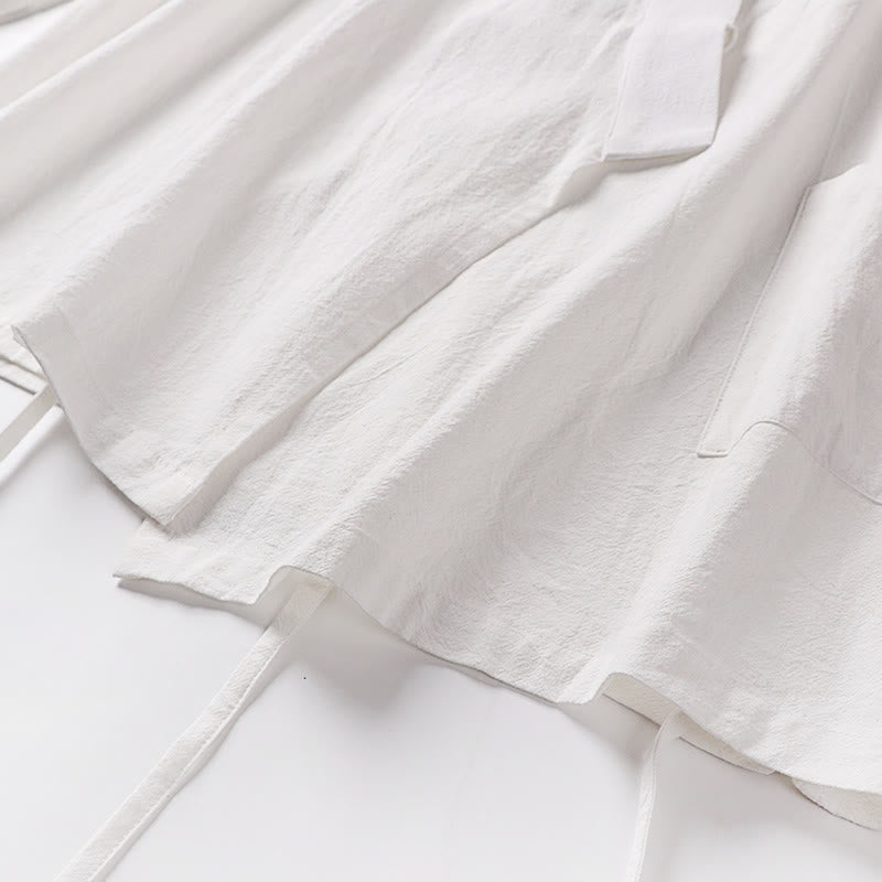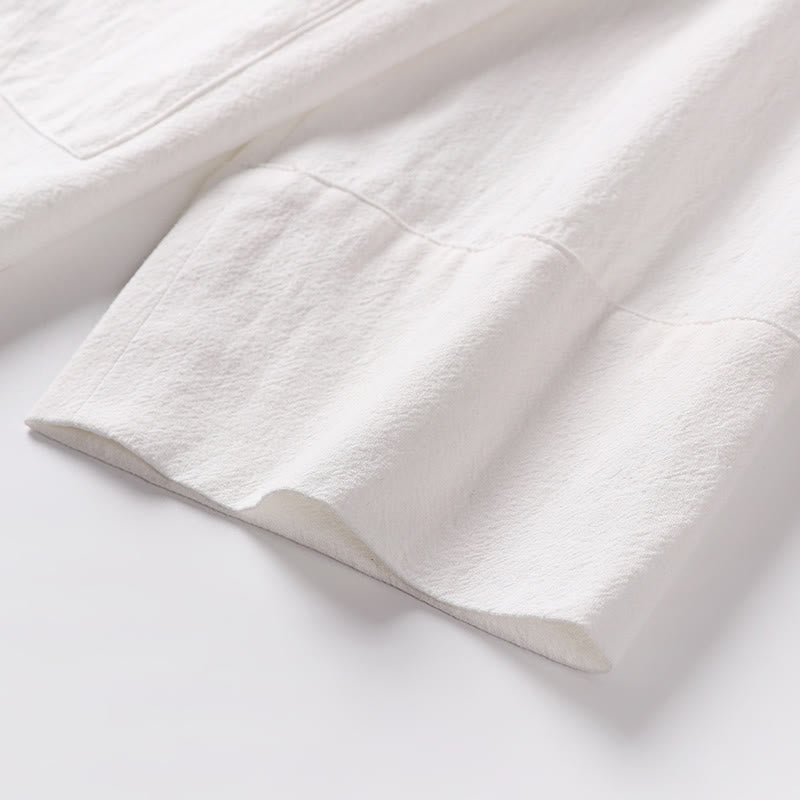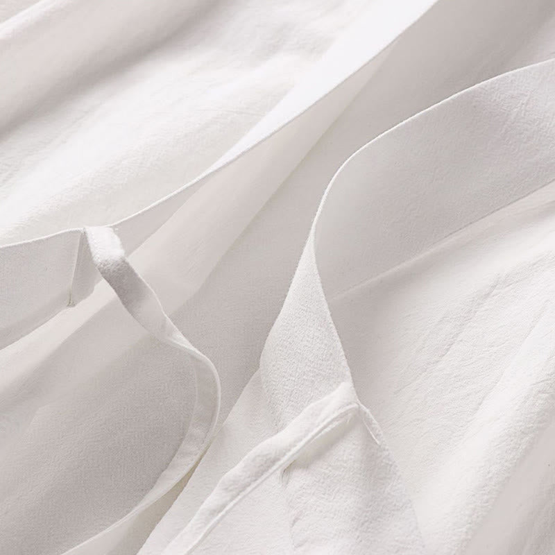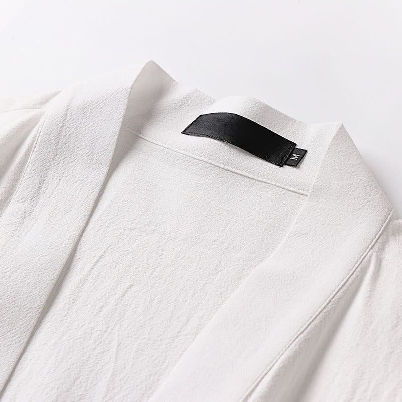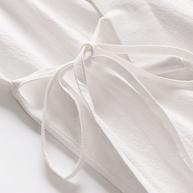 Buddha Stones 2Pcs Fall Lace-up Cotton Kimono Ankle-Length Wide Leg Pants With Pockets Men's Meditation Cloth Set - White - US/UK/AU54,EU64 (9XL) - image 17