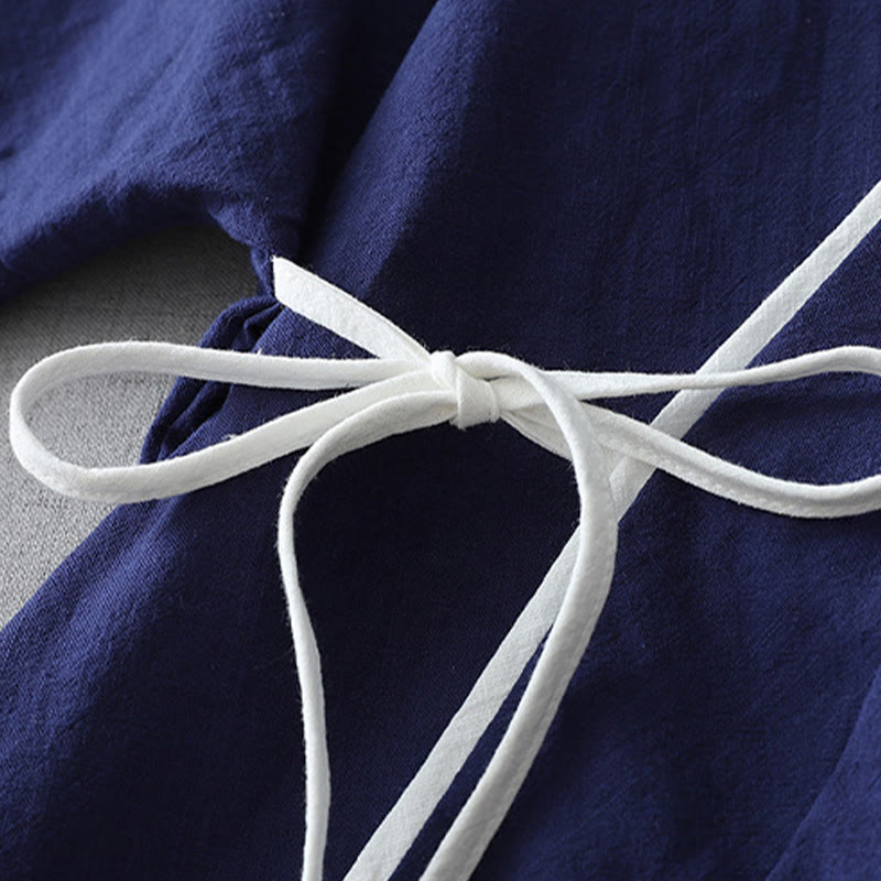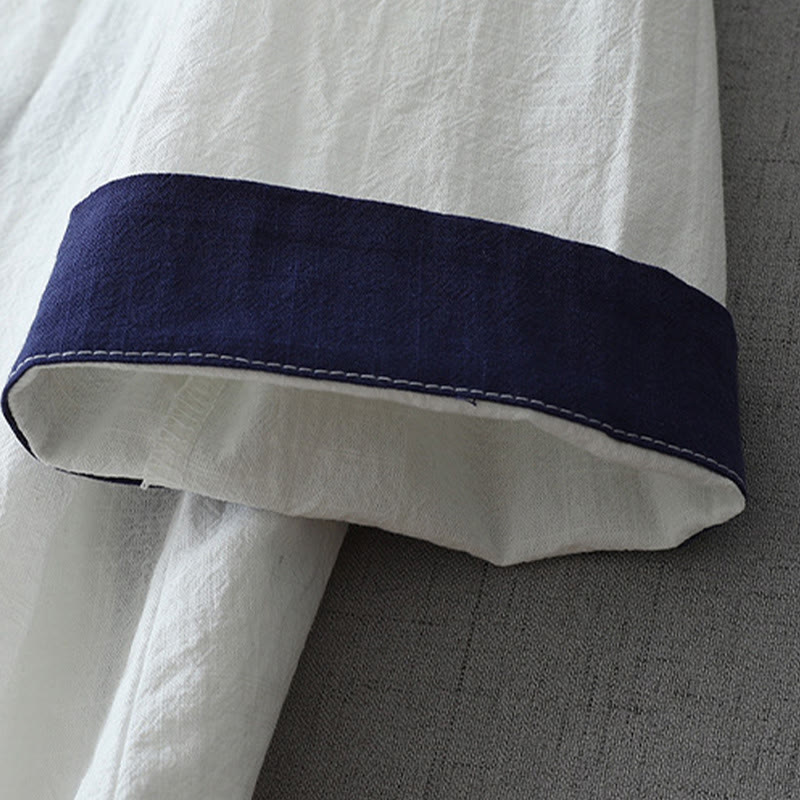Buddha Stones Casual Color Stitching V-Neck Three Quarter Sleeve Zen Cotton Linen Women's Shirt - Navy - US8-10,UK/AU12-14,EU40-42 (2XL) - image 0