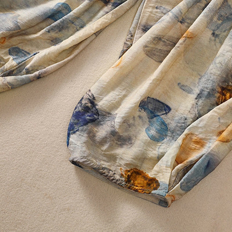 Buddha Stones Casual Flower Prints Design Women's Polyester 7-8 Length Pants With Pockets