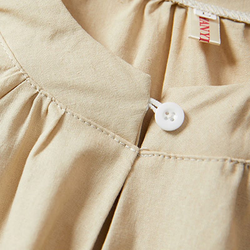 Buddha Stones Casual Plain Button Women's Short Sleeve Cotton Linen T-shirt
