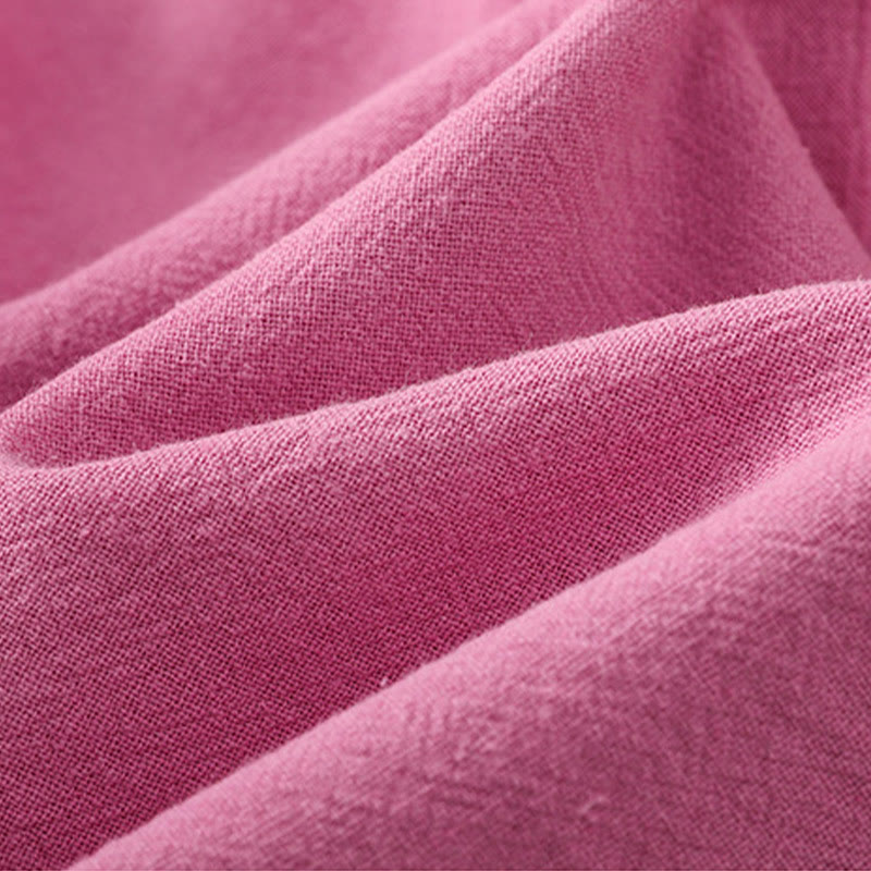 Buddha Stones Casual Plain Buttons Half Sleeve Women's Cotton Linen Shirt With Pocket