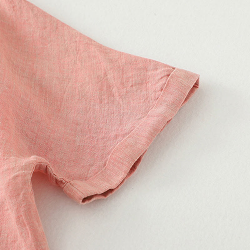 Buddha Stones Casual Plain Buttons Women's Cotton Linen Half Sleeve Shirt