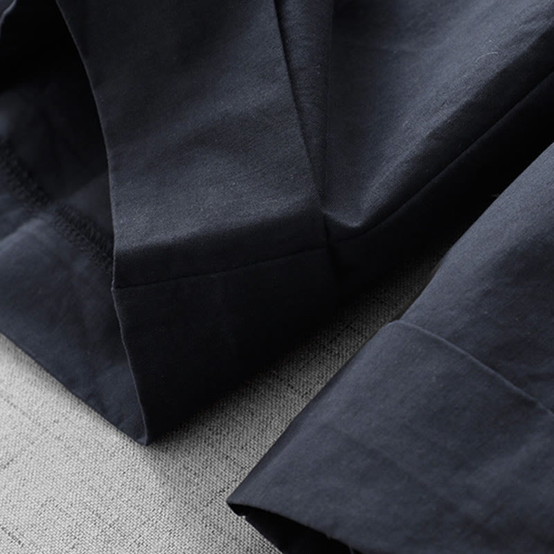 Buddha Stones Casual Plain High Waist Women's Polyester 7-8 Length Wide Leg Pants With Pockets