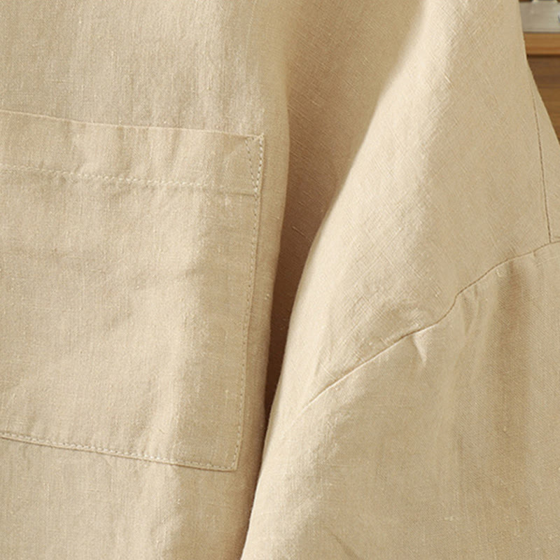 Buddha Stones Casual Plain Women's Cotton Linen V-Neck T-shirt With Pocket - Wheat - US14,UK/AU18,EU46 (2XL) - image 1