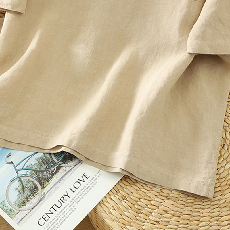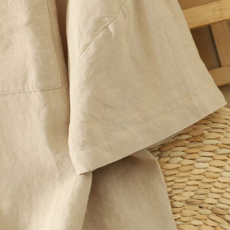 Buddha Stones Casual Plain Women's Cotton Linen V-Neck T-shirt With Pocket